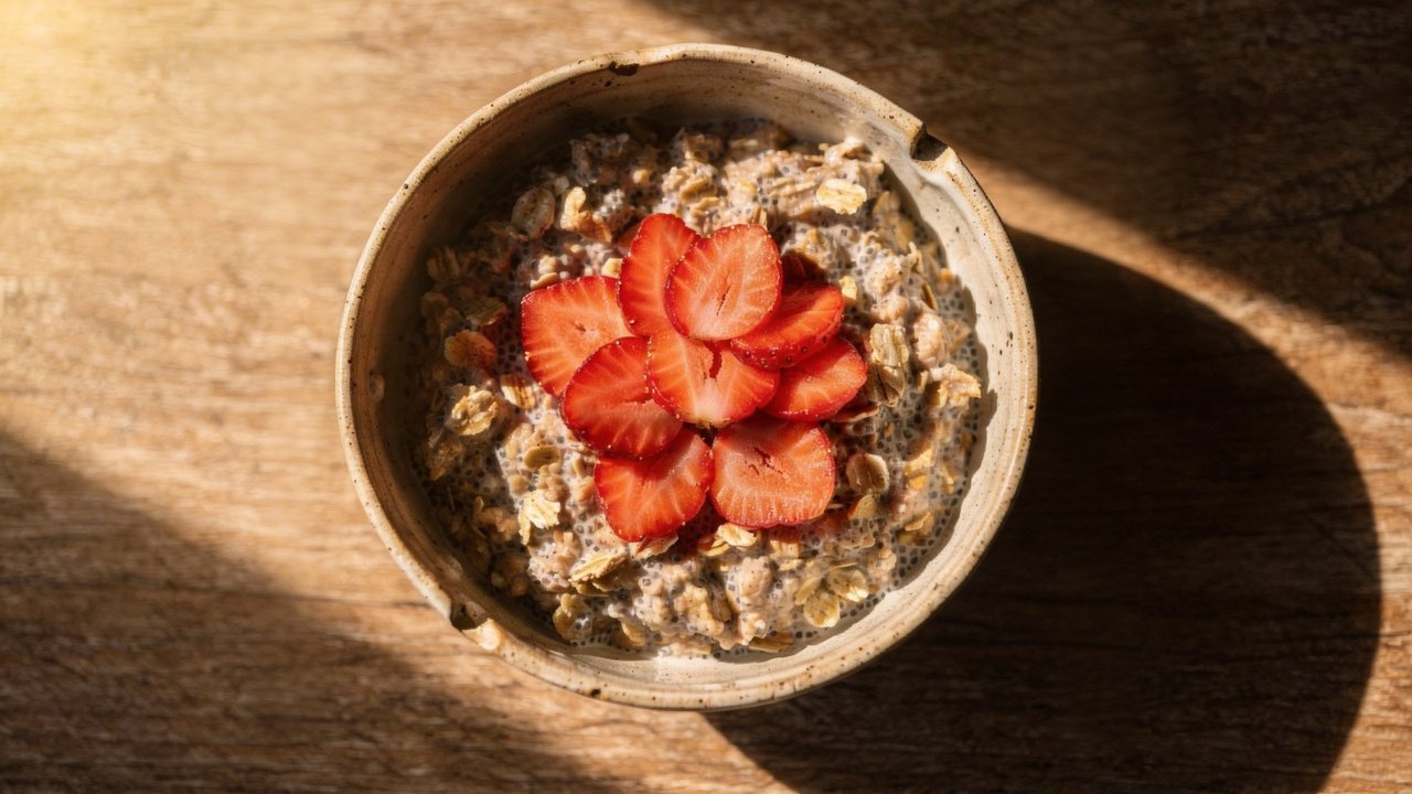 Enquanto a proteína do ovo oferece saciedade, as fibras solúveis da aveia e chia agem de forma única. Elas criam volume e liberam energia de maneira gradual, evitando picos e quedas bruscas de glicose. Essa digestão mais lenta e contínua é o que faz essa dupla se destacar na manutenção da fome bloqueada.